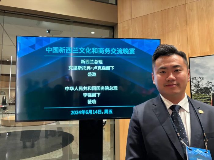 发布时间: 2024 18 6 月 责任编辑: CSGA 人气: 264【本会讯】 2024年6月14日晚上,新西兰潮属总会会长陈润沁应邀参加在新西兰奥克兰博物馆举行的各界欢迎宴会,中国国务院总理李强与新西兰总理拉克森共同出席晚宴。