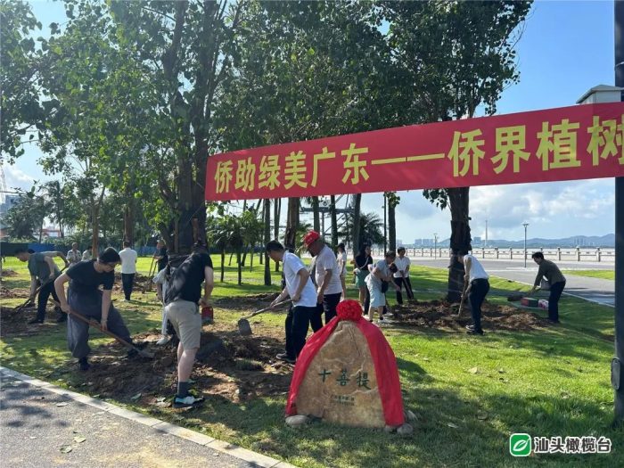 活动现场,新西兰潮属总会荣誉会长陈植代表总会种下一颗菩提树。此外,还有一同赴汕参加汕头英歌舞海外培训班的十个国家海外侨胞学员代表,以及汕头市侨联机关干部,共同植下十棵由省侨联捐种的菩提树,留下侨胞们参与家乡绿色生态建设的见证,为“百千万工程”走深走实赋绿能、添绿彩。