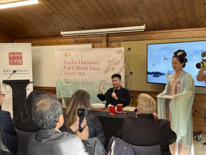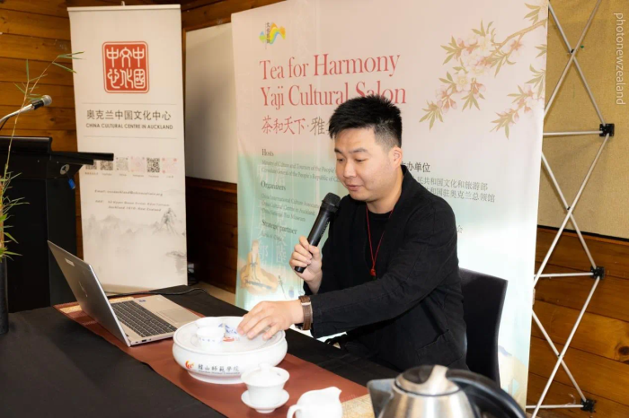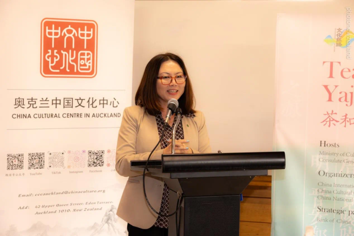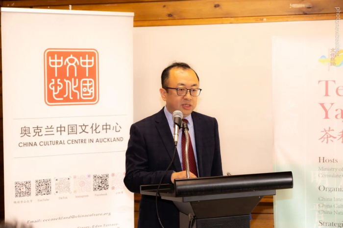 活动在驻奥克兰总领馆陈世杰总领事及奥克兰文化中心王建文主任的致辞中拉开了序幕。陈总在致辞中结合中国传统节气“小满”,介绍茶文化在中国传承发展的历史。陈总表示,茶是中华民族文化认同的重要载体之一,在人与自然和谐相处及中外沟通中发挥了积极作用。联合国设立“国际茶日”,中国传统制茶技艺及其相关习俗被列入联合国教科文组织《人类非物质文化遗产代表作名录》,体现了国际社会对茶文化价值的认可与重视。新西兰是人均茶叶消费量最高国家之一,麦努考和河川胡椒等本土茶树独具特色。茶叶曾是古丝绸之路上最重要的商品,在推动共建中新21世纪海上丝路合作中也必将发挥重要作用。