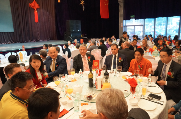 六時未到﹐訓練有素的潮属舞狮队早已整裝待發﹐於酒家门口開始迎宾表演﹐眾多華洋政要及社團領袖陸續蒞臨﹔貴賓包括中国驻奥克兰领事馆张宇领事﹑高等教育﹐技能和就业部长﹐科学和创新部长和条规改革部长 Paul Goldsmith﹑奥克兰市长 Phil Goff﹑国家党议员﹐教育科技委员会主席兼民族社区部长议会秘书杨健博士﹑国家党议员 Jami-Lee Ross﹑工党议员 Michael Wood ﹑工党候选议员Priyanca Radhakrishnan﹑香港潮属社团总会名誉会长、香港广东社团总会永远名誉会长王再兴﹑新西兰旅游局 Michael Stokoe ﹑奥克兰市经贸旅游发展处 Lisa Edser﹑奥克兰市政府对外事务顾问 Pamela Jamison﹑新西兰潮属总会顾问,奥克兰市政府发展局投资及国际关系处主任洪承琛﹑新西兰人权委员会民族关系战略顾问Rakesh Naidoo﹑奥克兰亚裔联络警官Jessica Phuang、屋仑华侨会所会长吕显华 (Kai Luey) 等﹔其中新西兰潮属总会最高荣誉顾问﹐前国会副议长 Eric Roy更隆重其事特意从南岛赶来﹐在本會法律顧問陳萍律師相陪下前來與奧市數十社團領袖及潮屬鄉親們歡度了一個愉悅晚上。