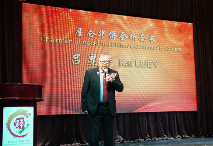 首先,请允许我代表新西兰潮属总会,向出席活动的各位嘉宾 和乡亲们,致以节日的问候,并祝大家新春快乐!鸡年吉祥!