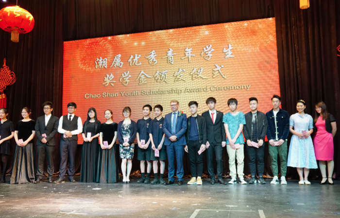 身為主人的潮属總會會長张乙坤先上台致歡迎辞﹐並由执行会长郑时佳即時英語翻译﹐多位尊貴華、洋嘉賓也先後受邀致賀辞﹔隨後是「優秀青年學生獎學金頒發」儀式﹐藉此表揚及鼓勵本地潮汕學梓﹔這也是本會培訓潮屬新生一代成為接班人而未雨綢繆之舉。
