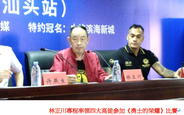 《勇士的荣耀》精彩賽事已於2019年5月25日下午七點在汕头市潮汕体育馆隆重舉行﹐来自8个国家的24名选手为當地群众带来12场精彩激烈的格斗比赛。此次搏击赛得以在汕头完滿举办,本會監事會副主席林正川師傅﹐也是新西兰李家泰拳创始人居功至偉。林師傅為此次賽事親自率領四大高徒荣归故里——广东汕头,和荣耀天王邱建良、魏锐、铁英华一道,在潮汕地区掀起一场史无前例的搏击风暴。桃李滿天下的林師傅祖籍汕头,上世纪70年代移居新西兰後便开馆授徒传功夫,在海外弘扬国术﹐将中国功夫发扬光大﹔成為新西兰搏击界的泰斗级人物。他毕生最大愿望是﹕带着自己最得意门生在老家举办一场国际级比赛,用最精彩的表演回报父老鄉親。