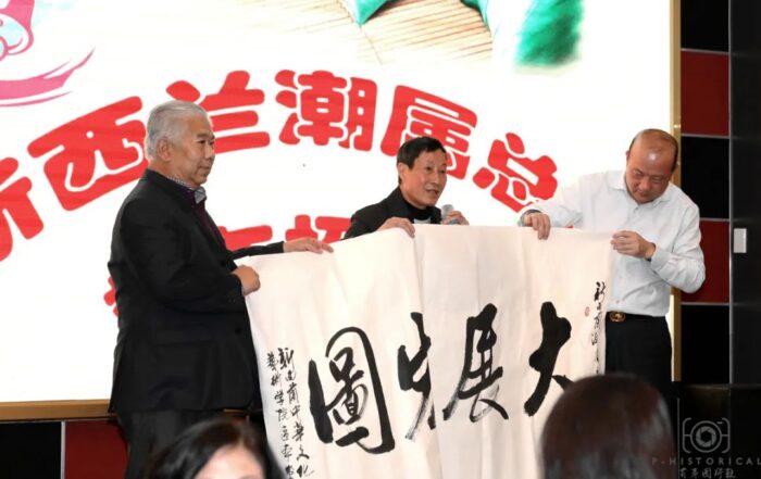 席间,新西兰中华文化艺术学院区本老师送出了一副珍贵字画《大展宏图》给潮属总会作为留念。