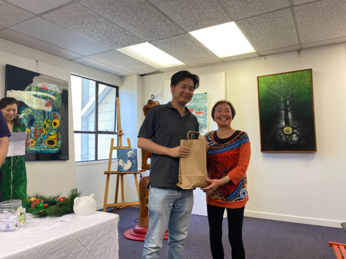 抽奖环节,Epsom 华人协会的关杏年会长是幸运观众