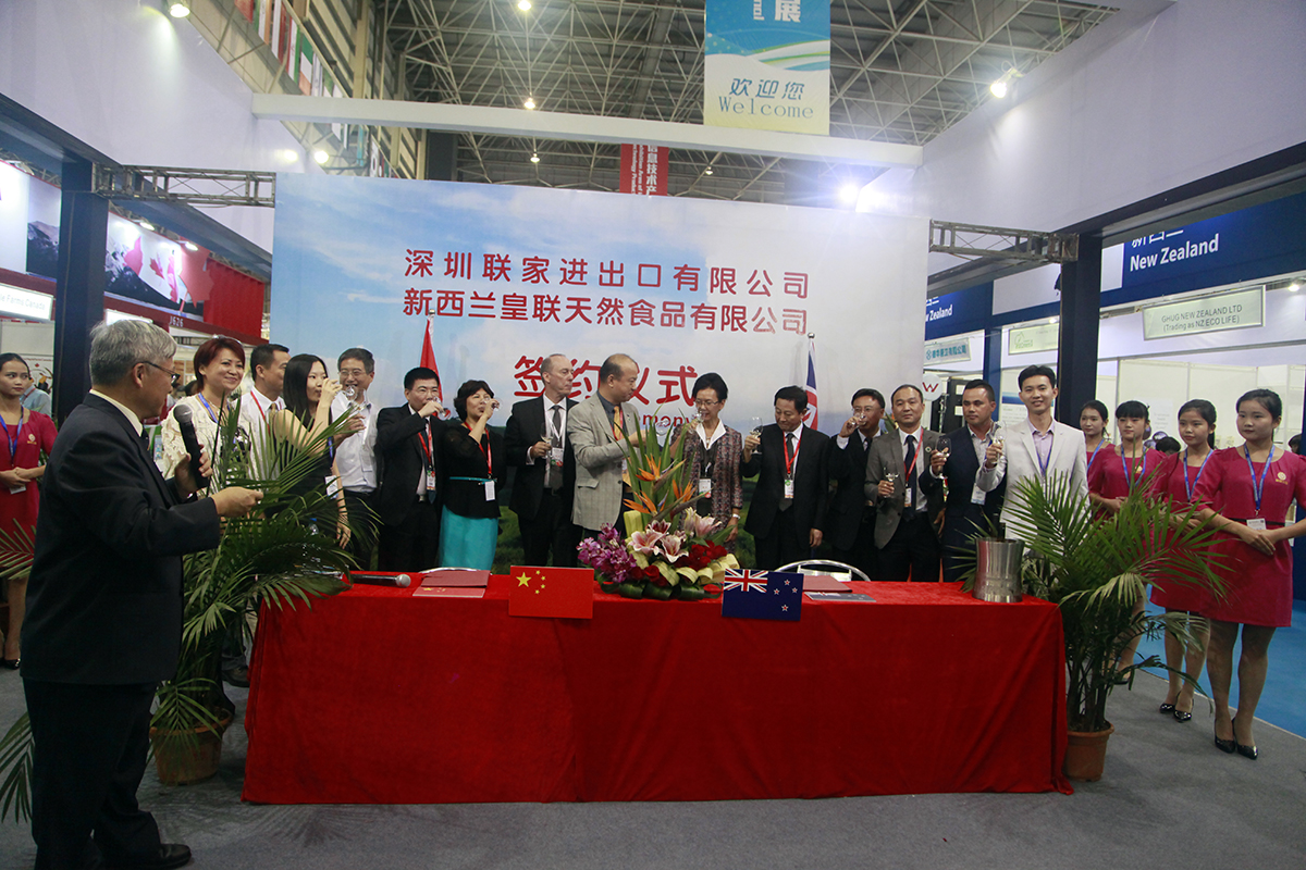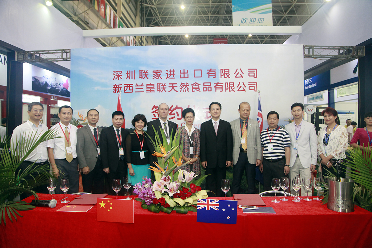 新西兰潮属总会积极融入“一带一路”战略规划,努力促进中国与新西兰两国经济文化交流,积极推动新西兰企业参展海博会。新西兰潮属商会(隶属于新西兰潮属总会)组织逾50家当地企业携70多个种类的产品参展,并在开幕当天由新西兰皇联天然食品有限公司与深圳联家进出口有限公率先司签署了有关食品进出口的战略合作协议,签约金额达3000万美金。新西兰潮属总会此次由张乙坤会长亲率团带领20多位团员参与“海博会”,是新西兰组织的规模较大的一次参展。
